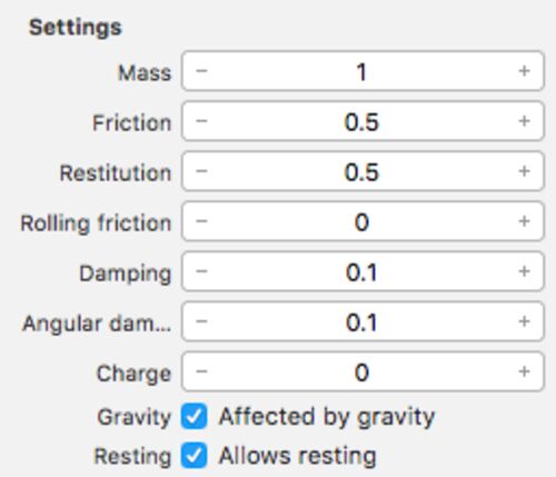 今回は Scene Editor の Physics Inspector (Command + Option + 6) 部分の Settings のところを見てゆく。 このパラメーターは物理シミュレーション時にジオメトリがどのような特性を持っているか設定する。 次回に説明する Velocity を含め、設定するパラ…